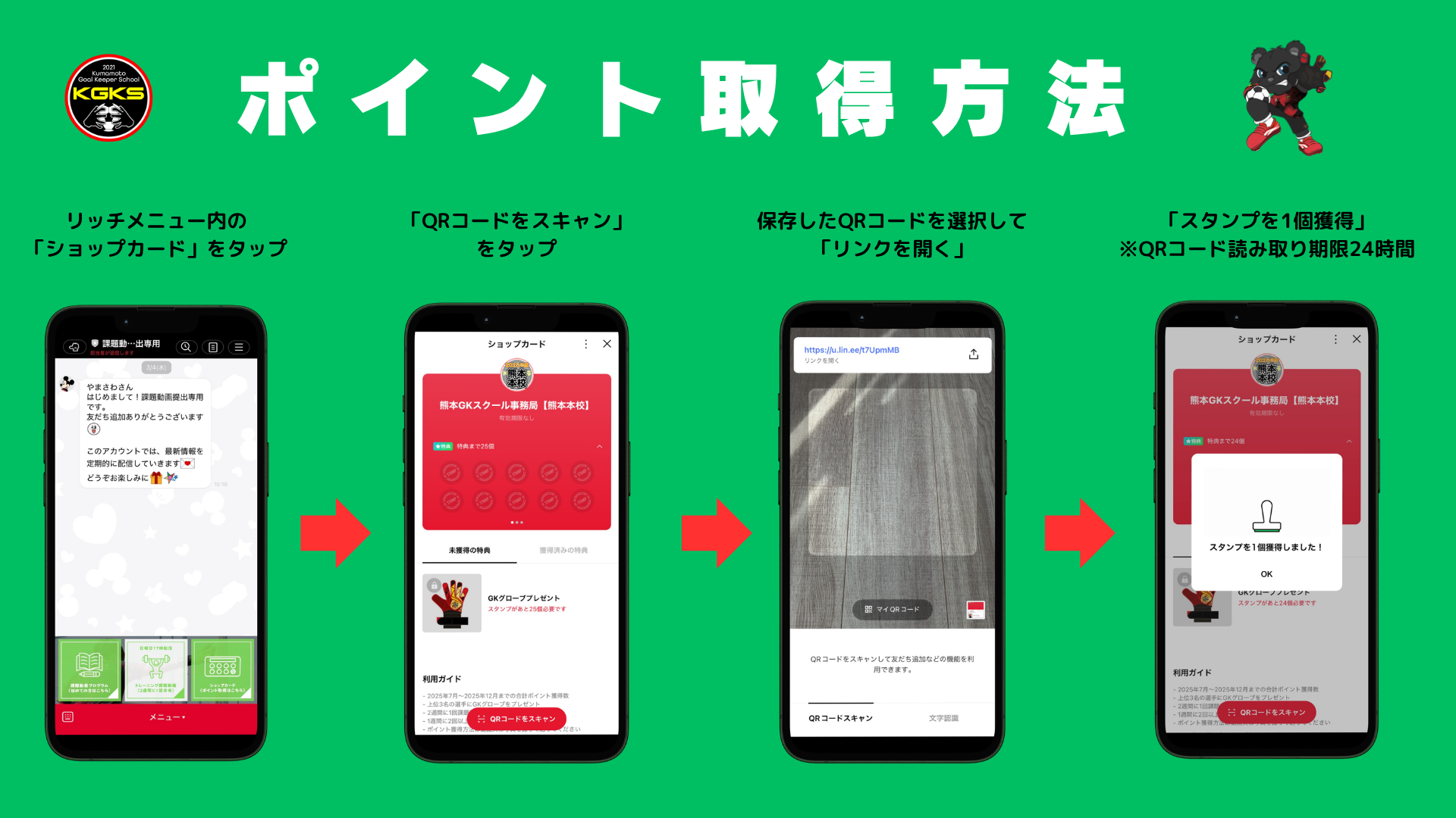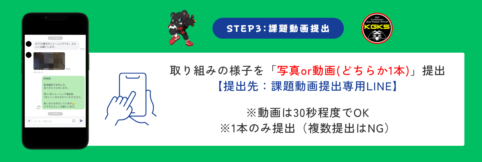 ※LINEメッセージは熊本GKスクール事務局のみ確認ができます